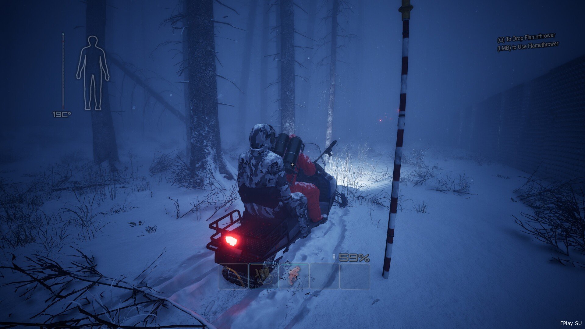 Игровой процесс имеет узнаваемую формулу Lethal Company и предлагает собирать материалы в условиях враждебного окружения, неблагоприятных погодных явлений и кромешной темноты. Проблема усугубляется угрозой ядерного удара в любое время, при этом мы не знаем точного времени катастрофы и должны работать как можно быстрее, используя в качестве средства передвижения снегоходы. Но и они не всегда могут увезти героев от опасности.